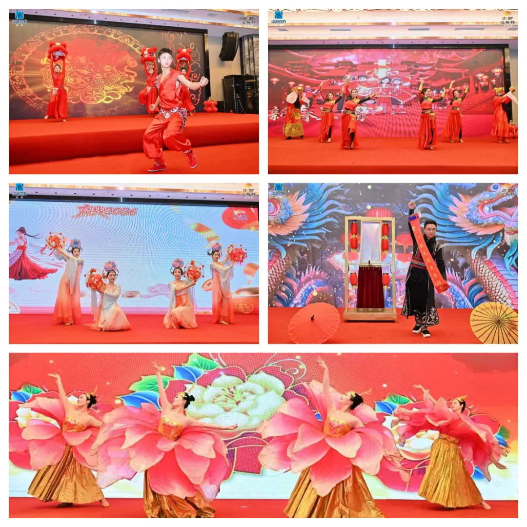 盛典期间,颁奖、文艺表演及抽奖环节轮番上演、精彩纷呈。颁奖环节表彰了2025年度优秀个人与团队,传递“崇尚优秀、争当先进”的正能量;舞狮鼓舞、魔术、诗朗诵、合唱等节目,展现团队情谊与奋进风貌;抽奖环节惊喜不断,传递公司对同仁的关怀与祝福,现场氛围热烈喜庆。